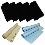 8 Pcs Set - 5 Black Microfiber Cleaning Cloths for Electronic Devices, Lens, Tvs, Ipod, Cell Phones, Digital Cameras, Ipad, Iphone, Sunglasses, Glasses, Samsung, LG, Canon, Nikon, Nokia, Droid, Blackberry + 3 Free JB Logo Microfiber Cleaning Cloth (2 Blue, 1 Yellow)