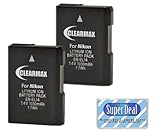 Clearmax 2 Pack of High Capacity Batteries For Nikon D3100,D3200, and D5100