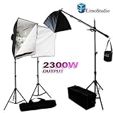 LimoStudio Photography 2300W Digital Video Photo Studio Softbox Light Kit with Overhead Hair Light Boom Kit and Carrying Case, AGG110